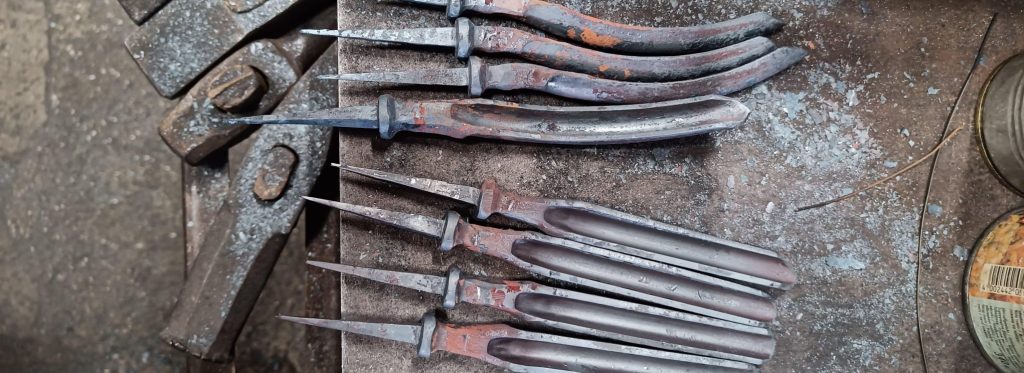 These processes are largely repeated in the production of adzes, with the difference that the head of the axe still needs to have a hole punched in it for the handle. You can watch a video of the axe production below.