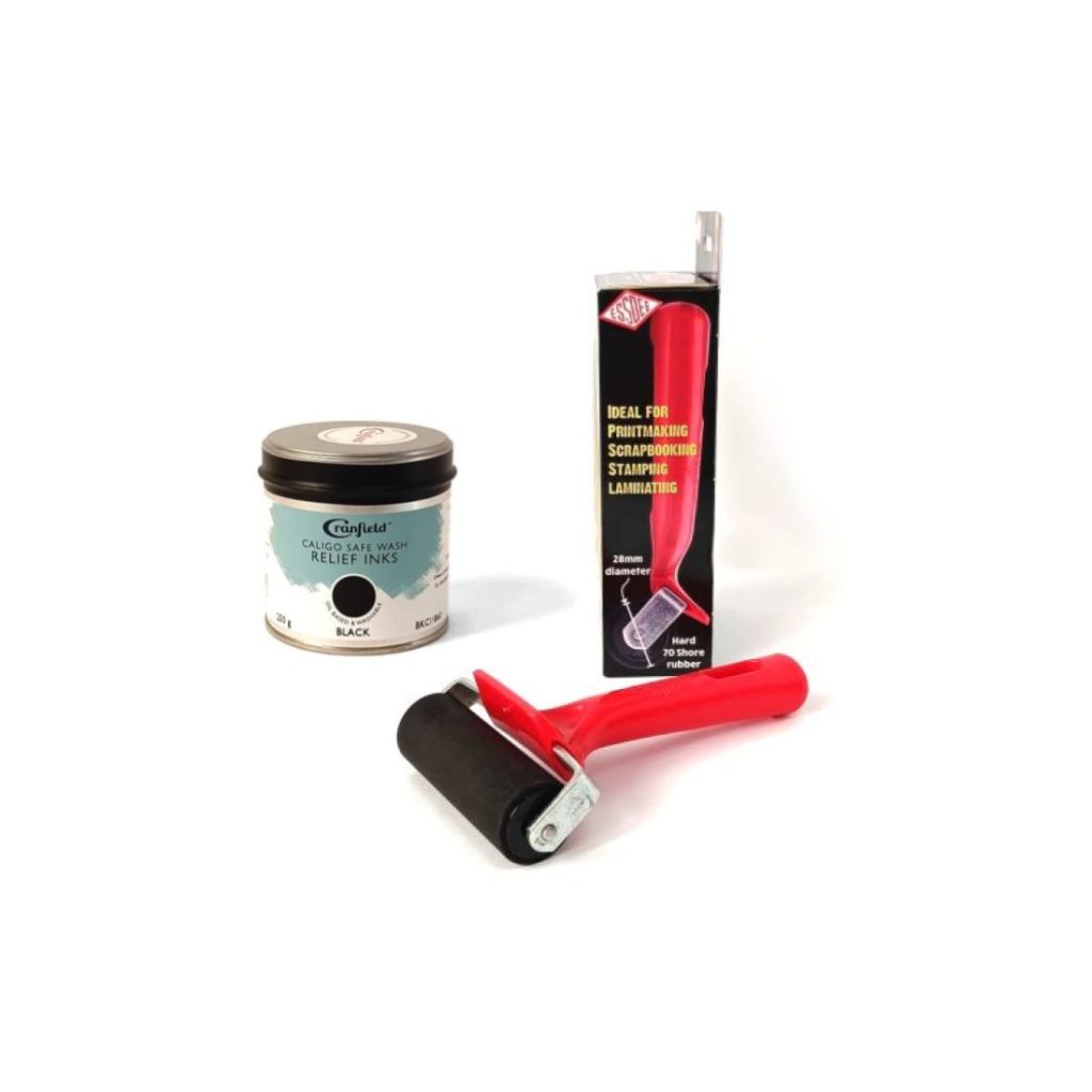 For relief printmaking techniques we’ve put together the SET OF 5 GRAPHIC GOUGES (SLH2) with a pear-shaped handle, selected specifically for relief printing work. We’ve also added premium natural-based inks from the British manufacturer Cranfield. You can read more about mixing colors in our article “Color in Printmaking.”