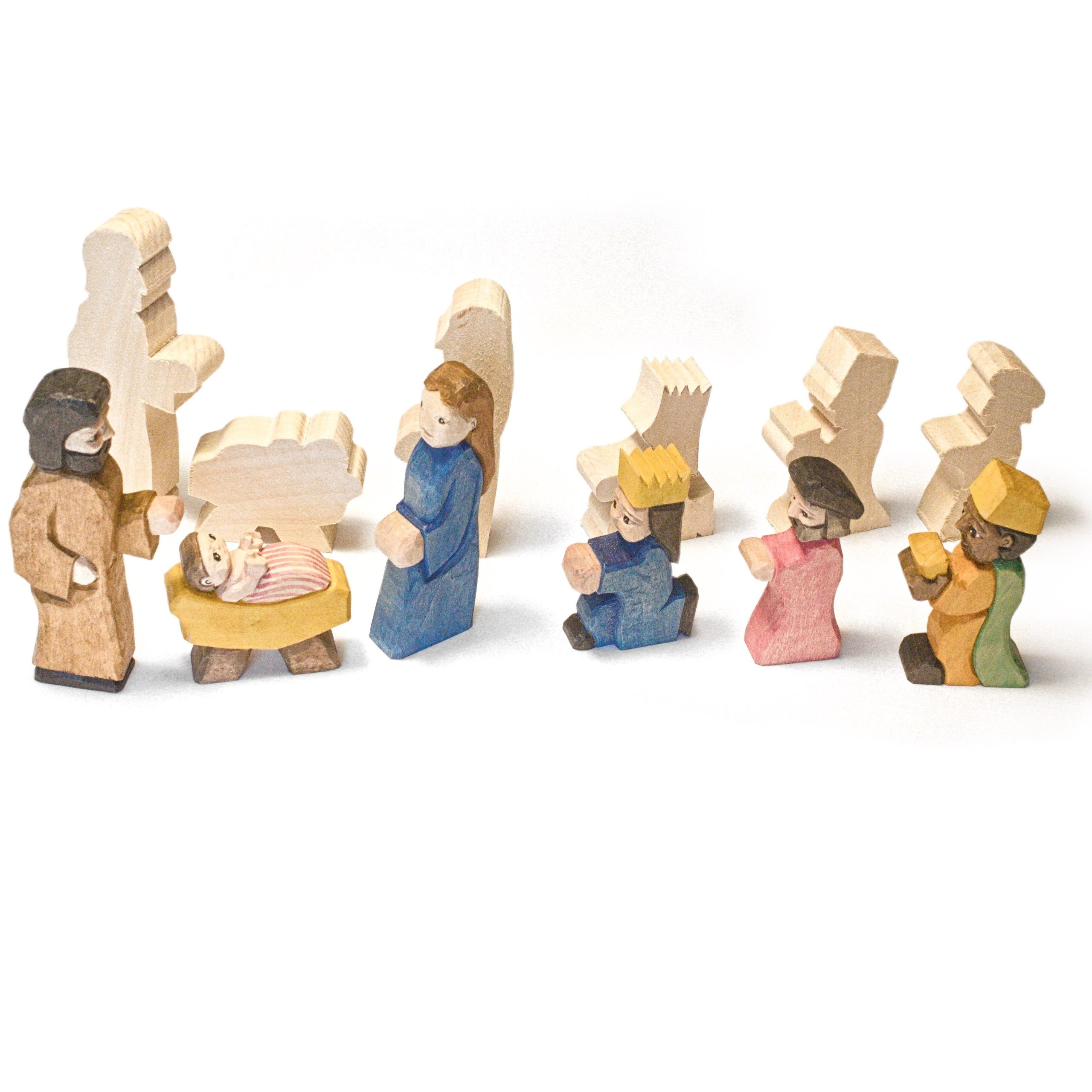 Špeciálna vianočná ponuka polotovarov postavičiek z lipového dreva na dotvorenie. Súčasťou je aj leták s potrebnými informáciami pre začiatočníka. Polotovar je z lipového dreva, ľahko sa opracováva. Pre opracovanie odporúčame základný rezbársky nôž N2, vhodný aj pre začiatočkíkov. Pre dotvorenie odporúčame použiť nôže N10 a N6. Pri práci dbajte na smer vlákien v dreve, ideálne je rez viesť v smere a nie proti smeru vlákien, čo často spôsobuje vytrhávanie a štiepenie dreva. Tak isto práca je takto obtiažnejšia, menej presná. Pre údržbu uchovávajte na suchom mieste a na udržiavanie ostria používajte jemné brúsne kamene a leštiacu pastu.